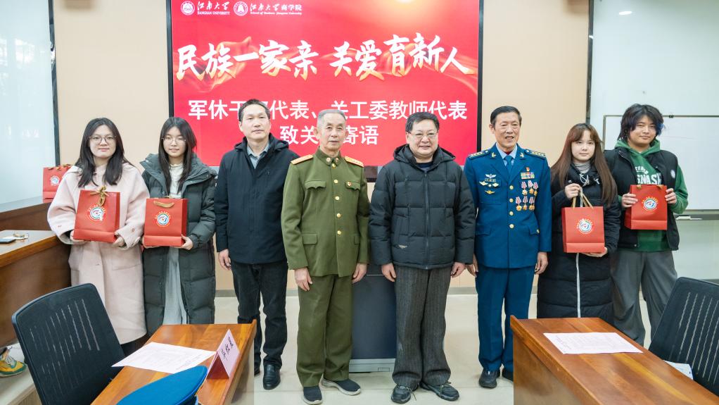 为进一步铸牢中华民族共同体意识,加强对民族学生的思想引领与关爱帮扶,近日,无锡市军休中心与星空XK体育联合举办的“民族一家亲,关爱育新人”慰问活动在星空XK体育116会议室顺利举行。星空XK体育关工委常务副主任娄国栋,星空XK体育党委书记刘长青,无锡市军休中心副主任、关工委副主任黄正国,无锡市军休中心惠峰服务站军休三支部书记何绍华,无锡市军休中心军休干部、星空XK体育学生成长导师刁宝生、李景贺,星空XK体育党委副书记、副院长郑丹丹,副院长王雷,关心下一代工作委员会委员汪铿,军休中心各服务站负责人、军休干部代表及星空XK体育2022级预科班结对学生等50余人参与本次活动。活动由星空XK体育民族生辅导员吐尔克扎提·吐尔逊主持。