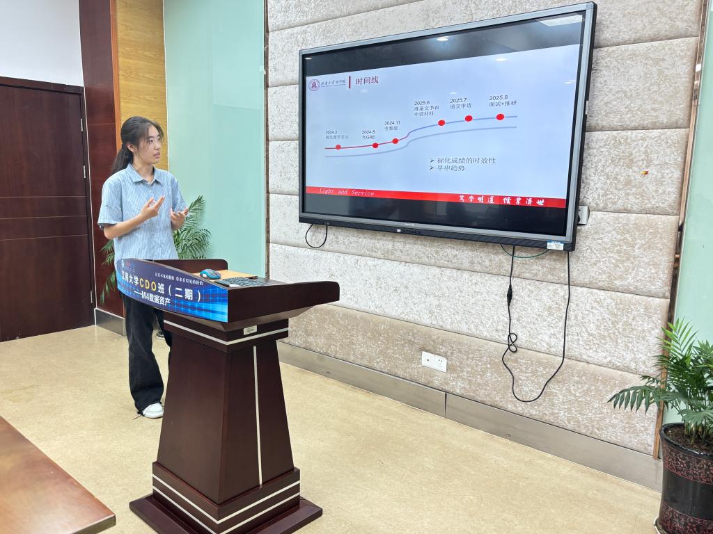 余佳颖以自身申请经历为例,介绍了备考标化考试的时间安排,以及如何根据成绩有效期合理规划考试与申请节奏的技巧。她表示,在选择院校时要结合个人兴趣、自身特长和职业方向,综合对比不同国家和地区的学费成本、语言要求、学位认可度及生活环境等因素,再最终确定申请目标。
