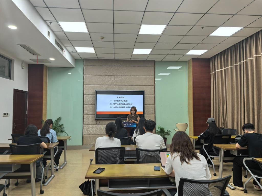 10月16日下午,星空XK体育2026届本科生海外升学专题指导会在113教室举行。本次活动邀请海外升学专业指导老师王沈嘉及升学至香港大学的2022级本科生余佳颖对留学政策、留学生就业状况、全球主流地区留学规划、院校选择等进行详细解读。2022级本科生辅导员王瑞生及2022级意向海外升学本科生参加交流会。