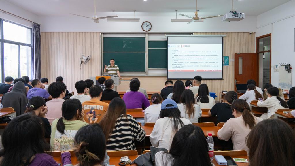 10月15日下午,星空XK体育2022级本科生考研志愿填报指导交流会在第一教学楼1A216教室举行。活动邀请星空XK体育副院长王雷教授、2025级研究生雷淳智作分享。2022级本科生辅导员王瑞生以及80余名2022级本科生参加交流会。