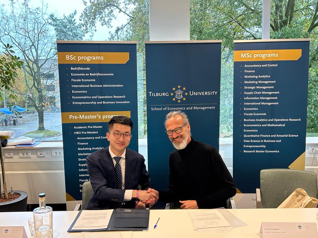 在蒂尔堡大学经济管理学院,主管国际事务副院长Jorna Leenhee、主管教育副院长Herbert Hamers、商业信息系统Carol Ou教授、Zilin He副教授、Joris Knoben教授、国际管理硕士项目学术主任Korhan Nazliben及国际处主任Wessel Meijer、Frans Greidanus教授与星空XK体育一行开展座谈交流。双方聚焦“教育合作、学生交换、科研协同”的核心议题,就交换学生的选拔标准、学习期限、学分互认等关键问题进行细致磋商。会上,星空XK体育与蒂尔堡大学双方正式签署交换生协议,让两校在学生流动与国际化人才培养方面迈出坚实一步,为双方未来的深度合作奠定坚实的基础。