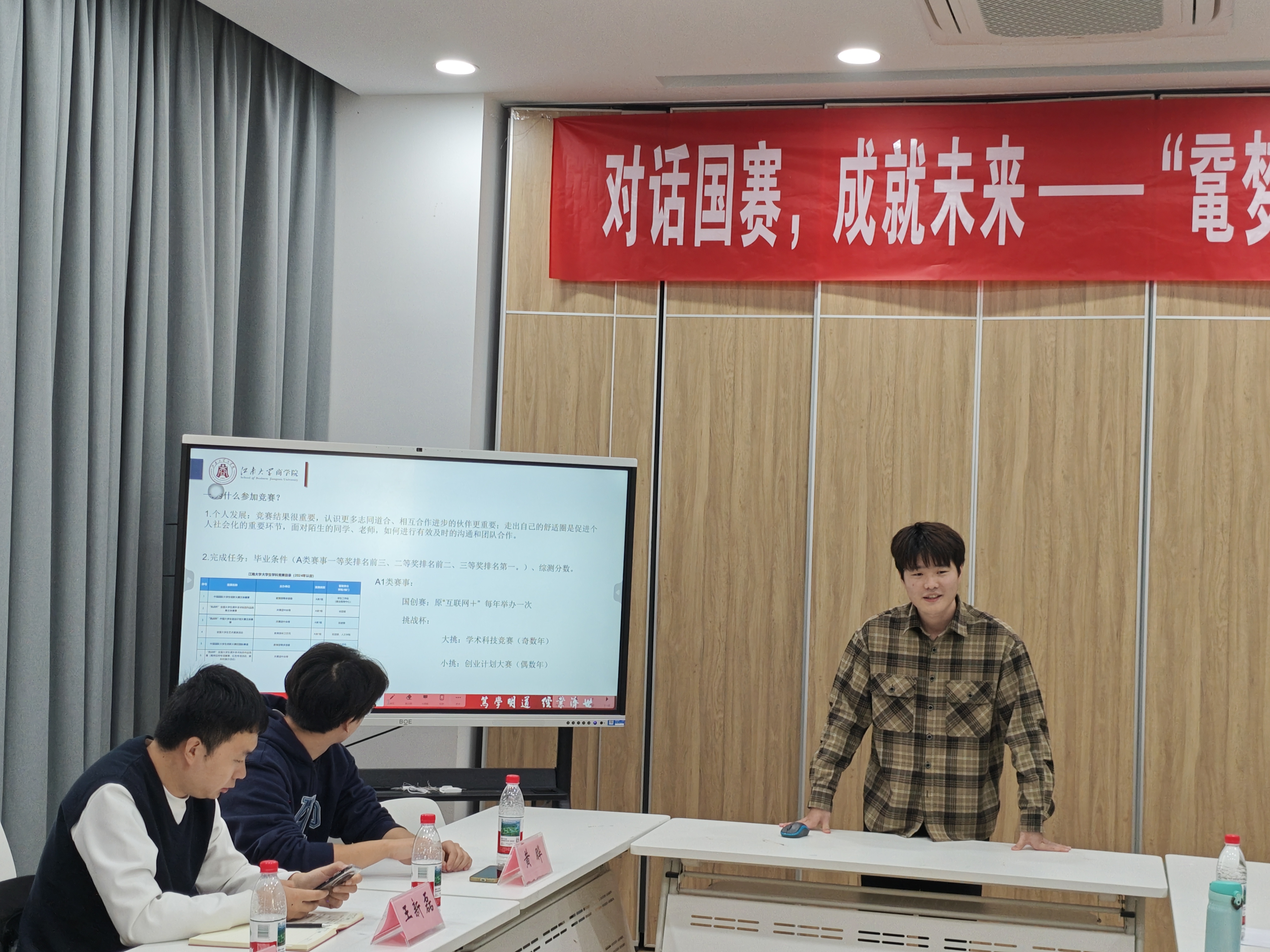 11月3日下午,星空XK体育在南区浩苑“一站式”学生社区开展“鼋梦江南”职涯工作坊创新创业指导活动。本次活动以“对话国赛,成就未来”为主题,特邀食品学院专职辅导员王新磊、食品工程24硕黄晔与金融24硕张圆国分享A1类竞赛经验,围绕高水平学科竞赛备赛展开深入交流。活动由研究生新生辅导员孙旭媛主持。
